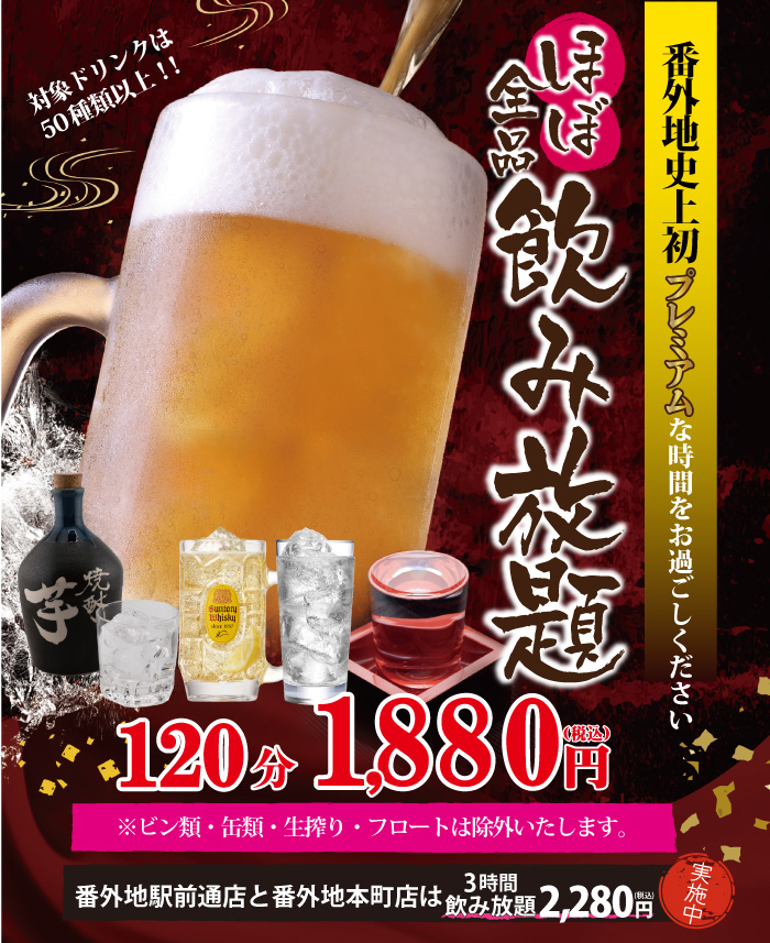 ●飲み放題のラストオーダーは終了20分前になります。 ●グラス交換制になります。
